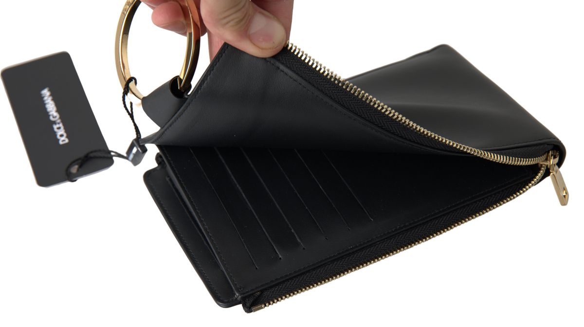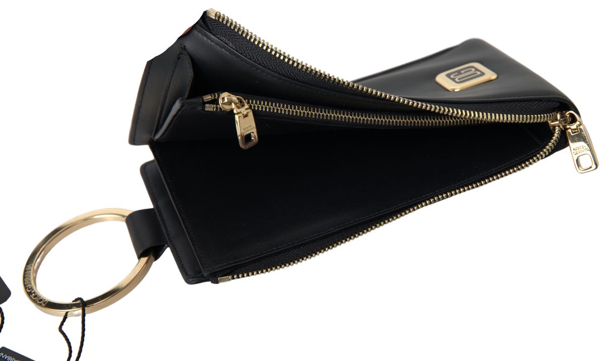 Experience the epitome of sophistication with this stunning cardholder from the luxurious Dolce & Gabbana collection. Crafted from the finest quality leather, this black cardholder promises not only to secure your cards but also to elevate your fashion quotient. Featuring a distinct logo-plaque at the rear and a convenient side zip fastening, this accessory ensures style and practicality. Additionally, it showcases card slots for organization and a ring fastening for secure attachment.