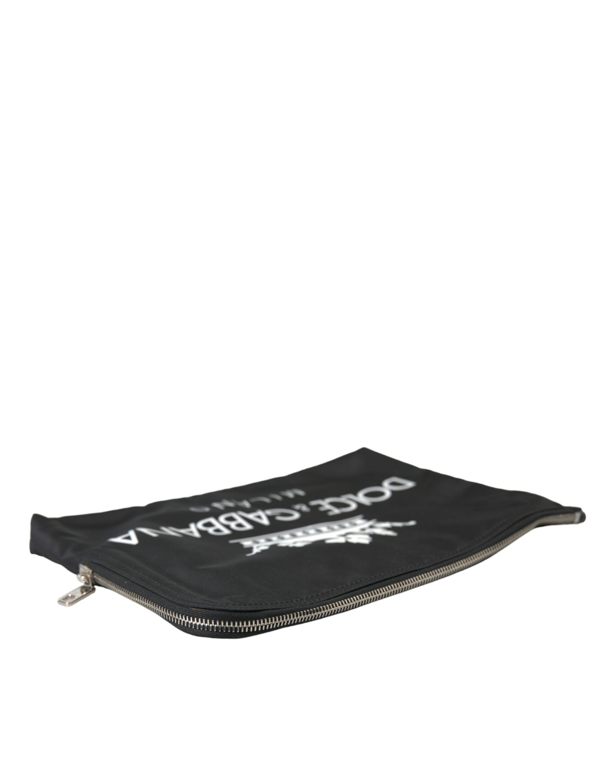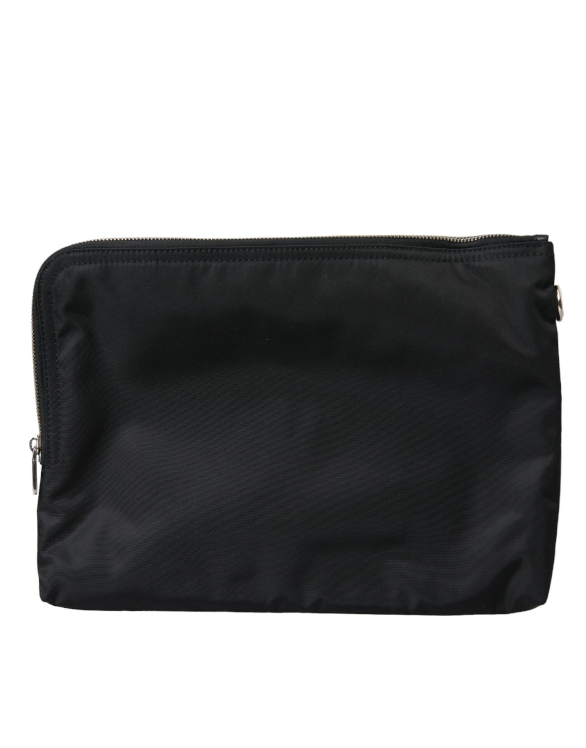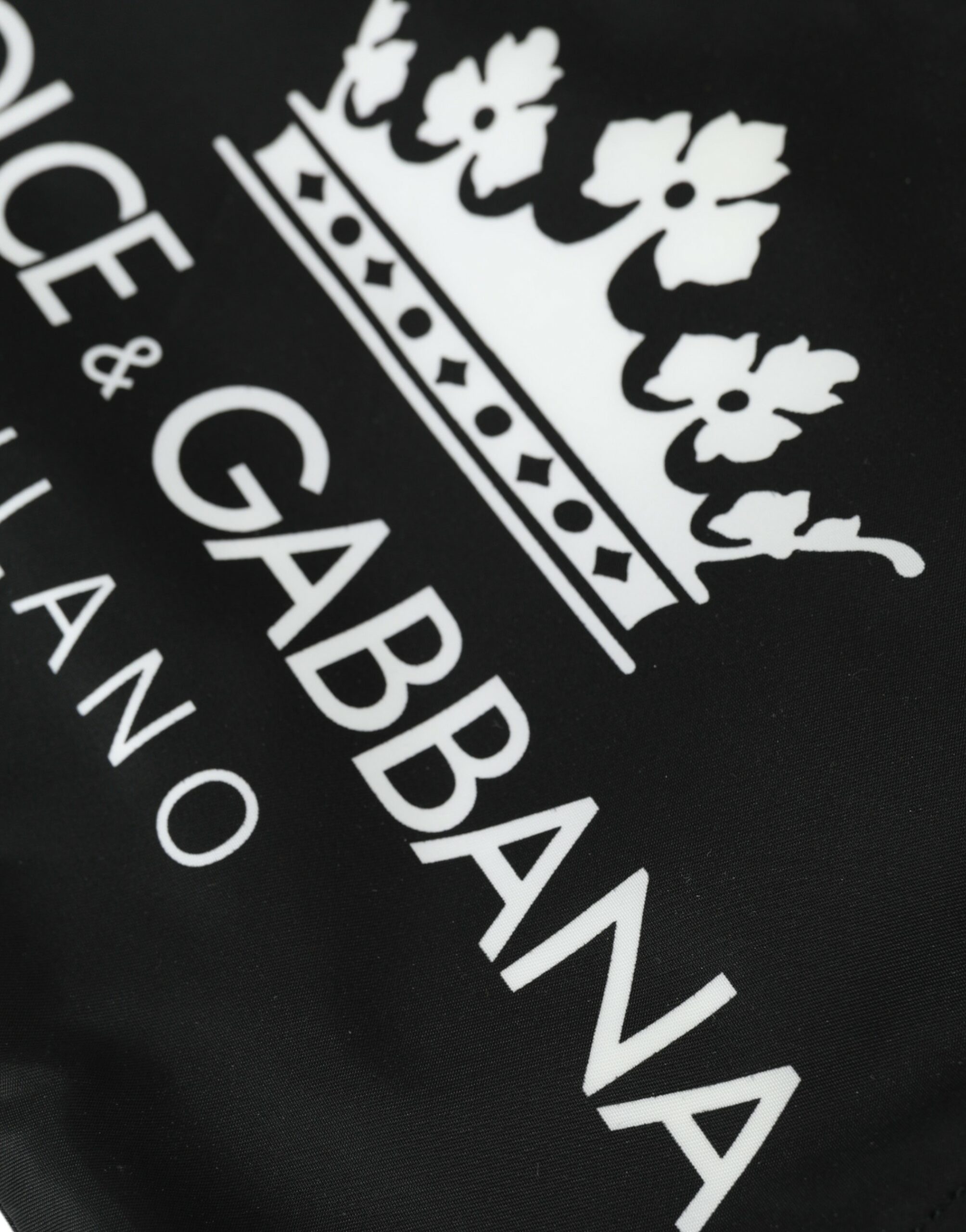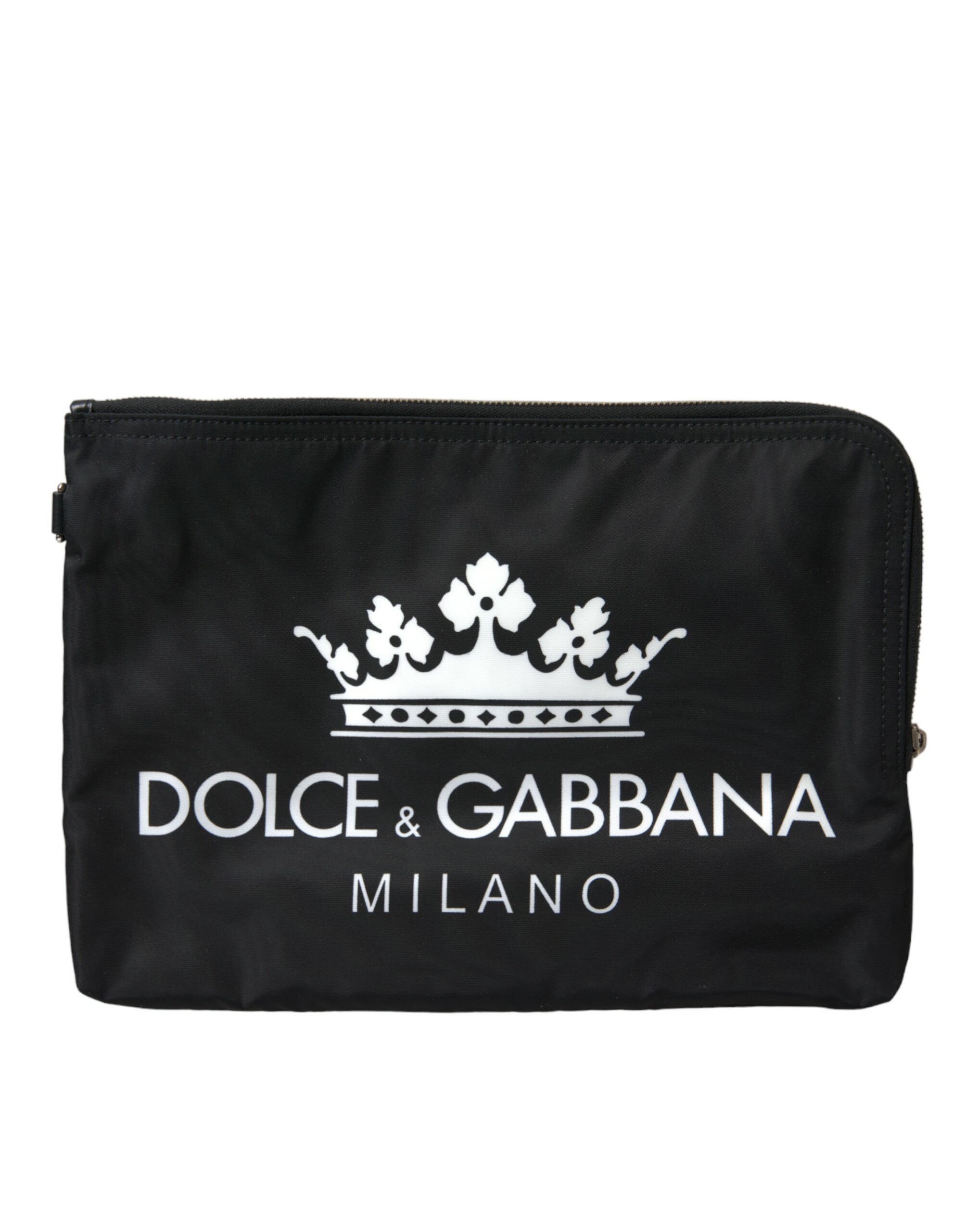 Indulge in the epitome of luxury with this authentic and meticulously crafted clutch. This sleek and sophisticated black nylon clutch from Dolce & Gabbana features a regal crown print and brand logo on the front, adding opulence to your evening attire. Organize your essentials effortlessly with its dual inner zippered compartments and securely fasten with the sleek zipper closure. Whether for an upscale event or a night out, this clutch is a testament to exceptional Italian craftsmanship.