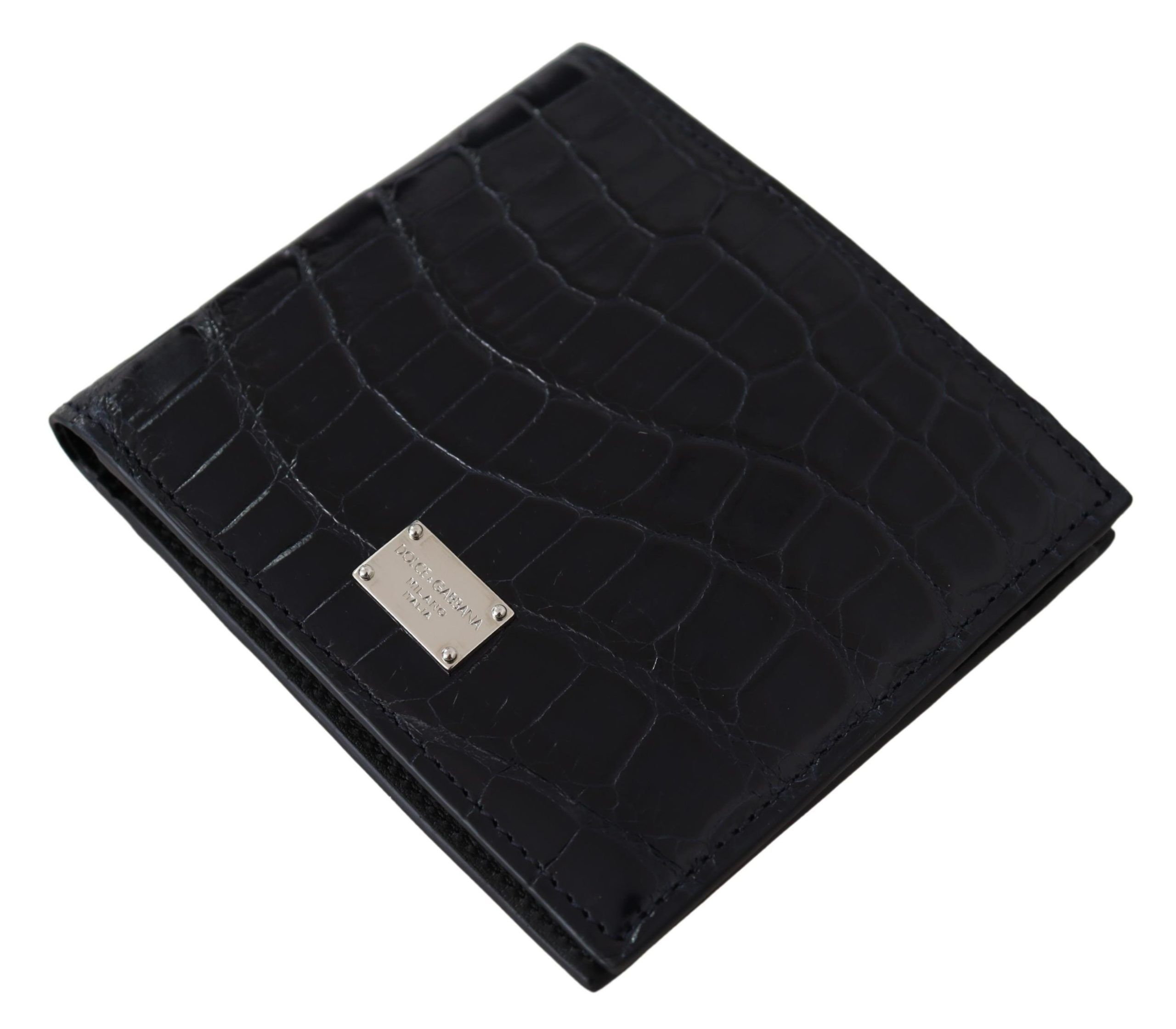 Indulge in the luxury of a timelessly crafted Dolce & Gabbana bifold wallet. Made with exceptional care, this 100% authentic wallet is designed for the discerning individual seeking both function and style. Encased in exquisite black crocodile leather, it opens to reveal ample slots and compartments to organize your essentials. Its compact size ensures a seamless fit in your pocket or bag.