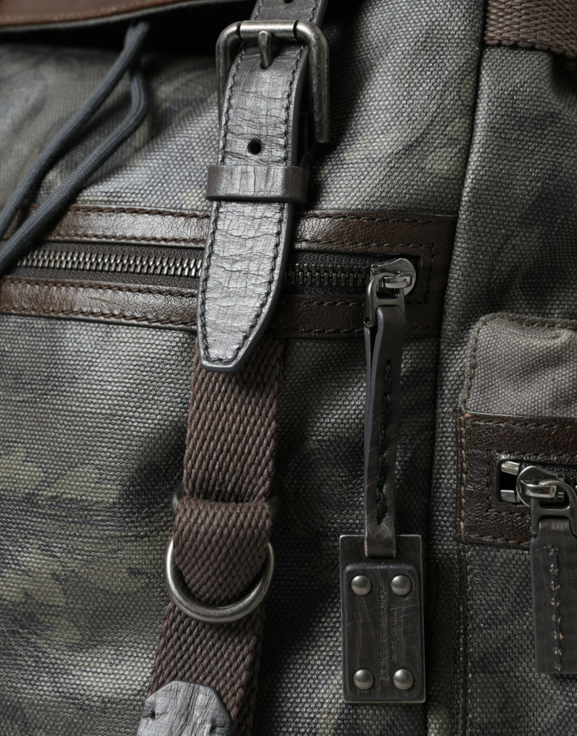 Introducing our exquisite Dolce & Gabbana rucksack, a testament to luxury fashion and Italian craftsmanship. This brand new, tag-on backpack is made from a sophisticated canvas leather blend, perfect for the fashion-forward individual. Its buckle closure and logo-engraved metal hardware accentuates its refined elegance. The backpack’s fabric inner lining ensures durability and protection for your valuables, while the adjustable shoulder straps offer comfort and versatility. Its green and brown hues with silver metal detailing showcase a classic yet modern aesthetic, making it the perfect accessory for any outfit.