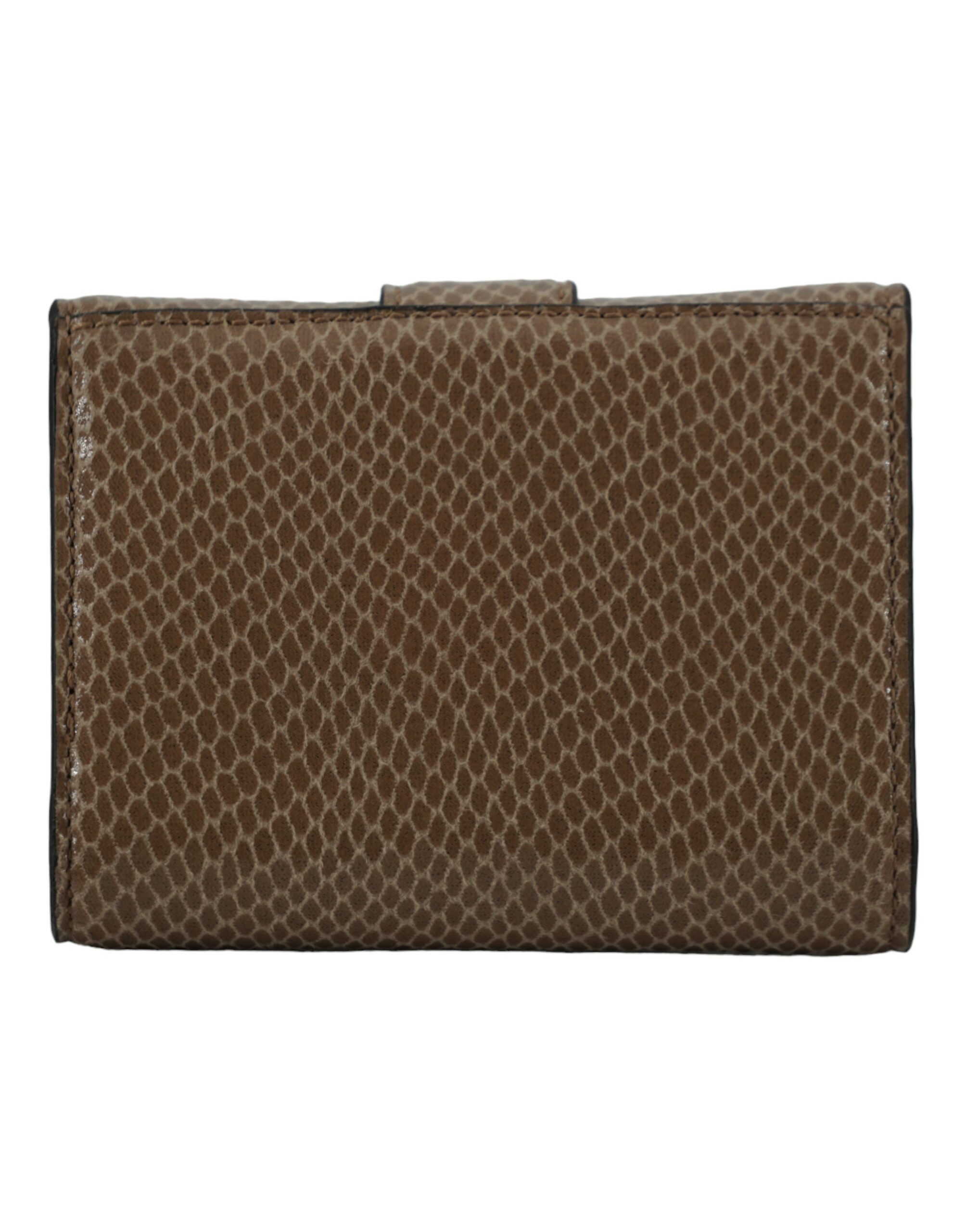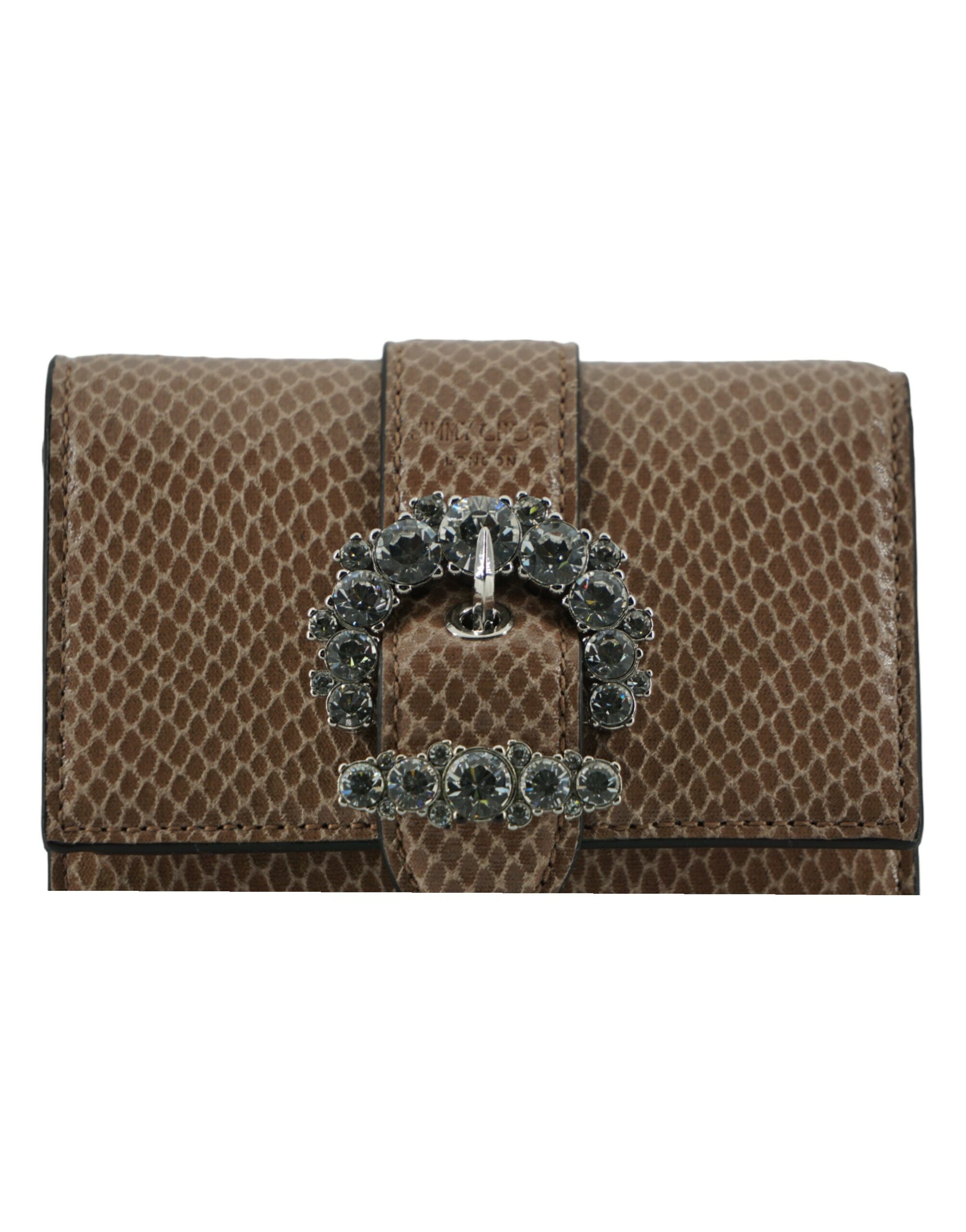 Details: Card holder and wallet realised in lizard printed leather. Flap closure with snap button. With Crystals hardware and logo details. One main compartment and 6 card holders slots.