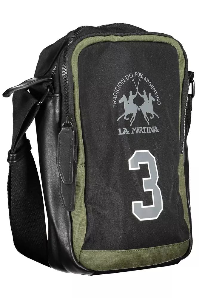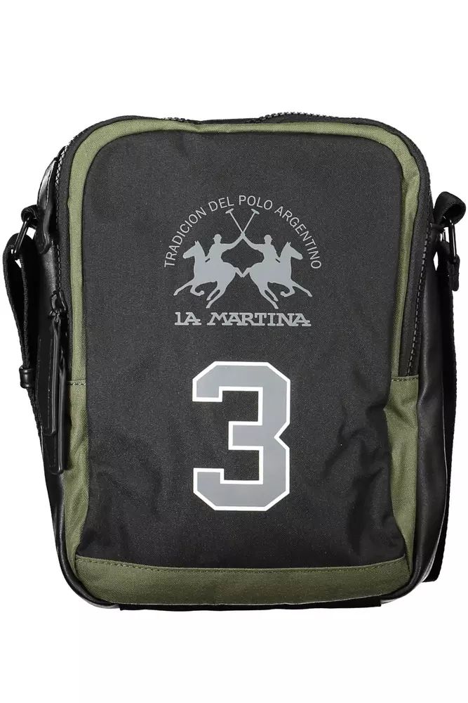 Embrace the blend of luxury and functionality with La Martina’s expertly-crafted shoulder bag. This sleek black accessory boasts an adjustable strap for ultimate comfort, dual compartments to keep your essentials organized, an internal pocket for secure storage, and striking contrasting details. The playful print adds a touch of personality, while the zip closure ensures everything stays in place. Finished with La Martina’s distinguished logo, this bag is both a practical companion and a style statement.